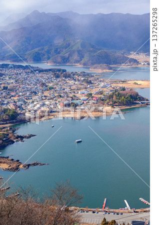 河口湖と富士河口湖町の街並み【山梨県】