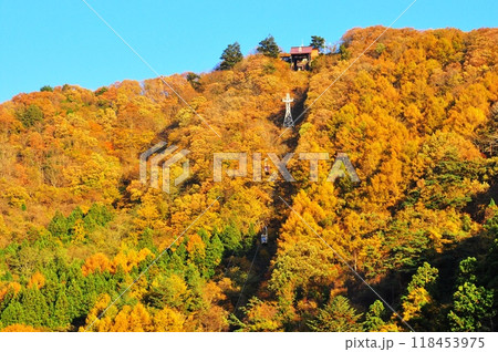 河口湖畔カチカチ山(天上山)の黄葉とカチカチ山ロープウェイ
