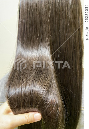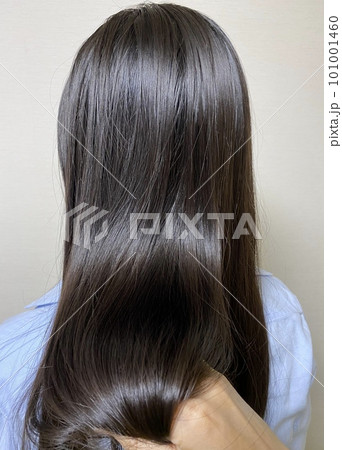 美容ポートレート、ストレートのロングヘアの髪の毛の天使の輪が綺麗なヘアケアイメージ 美しい髪と後ろ姿