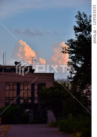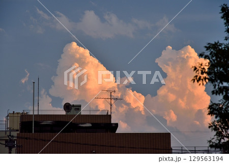 昭島市 夏の夕空とピンク色に染まる積乱雲