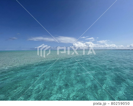【与論島】エメラルドグリーンに輝く穏やかな海に映る雲