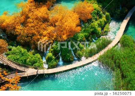 Beautiful wooden path in Plitvice Lake, Croatia.