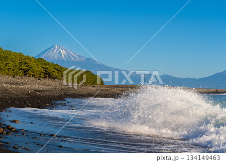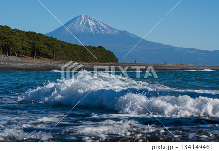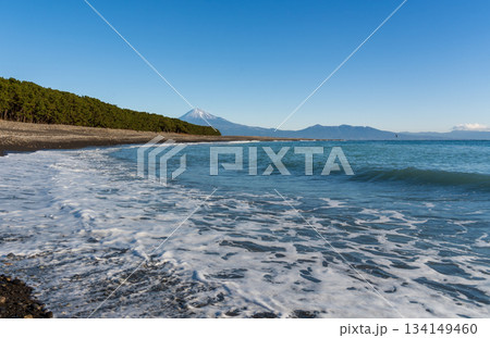 三保ノ松原から波と富士山