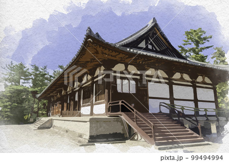 水彩画風 唐招提寺 礼堂 奈良県奈良市
