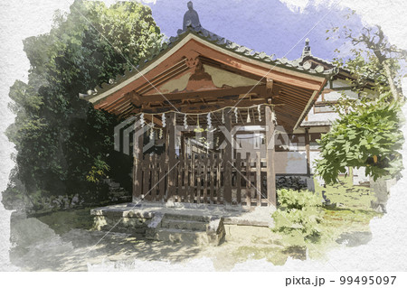 水彩画風 唐招提寺 地蔵堂 奈良県奈良市