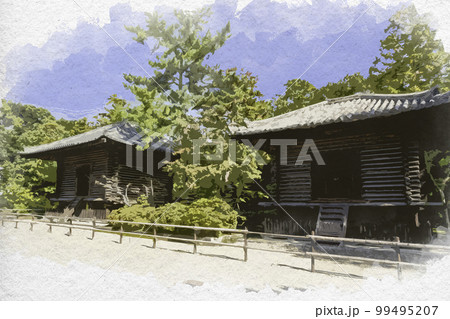 水彩画風 唐招提寺 宝蔵と経蔵 奈良県奈良市