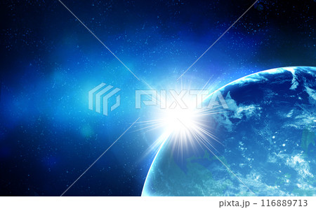 地球 正月 謹賀新年 日の出 太陽 日本中心