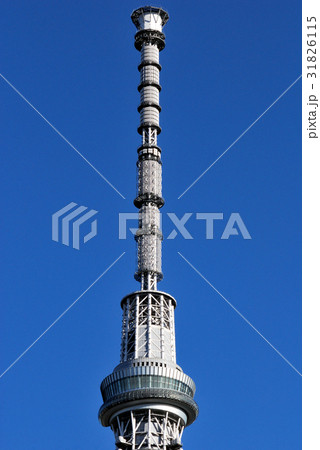 東京スカイツリーの先端部と青空