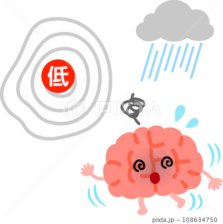 低気圧のイメージとバランスを崩す脳のキャラクター