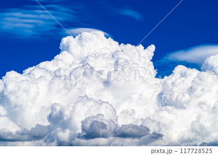 夏の青空に積乱雲と上空の波状雲 b-3 ライトカラー