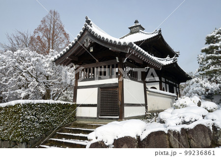 冬の東福寺 回廊と経蔵の積雪 京都市東山区
