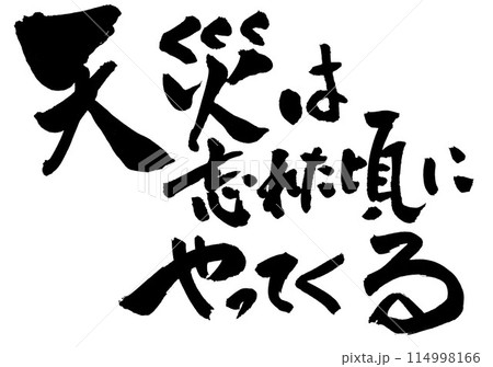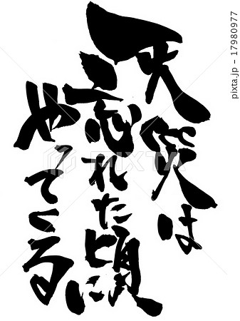 天災は忘れた頃にやってくる ・・・筆文字素材の手書きの墨で書いたイラスト文字 文字 筆文字 手書き