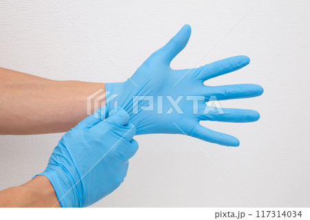 ニトリル手袋をはめる