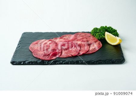 天然石プレートに盛り付けられた牛タン