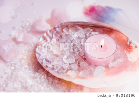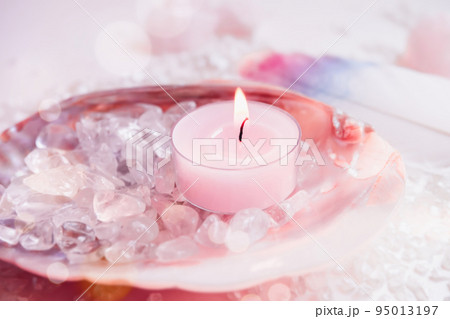 アロマキャンドルと天然石 スピリチュアルなイメージ素材