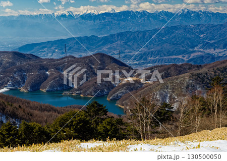 大菩薩連嶺・天狗棚山から見る大菩薩湖と南アルプスの山並み