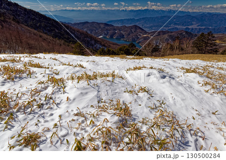 大菩薩連嶺・天狗棚山から見る大菩薩湖と南アルプス