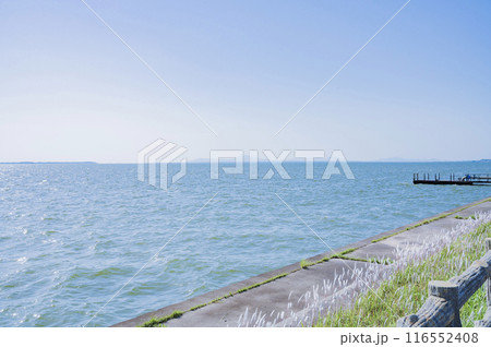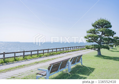 爽やかな初夏の霞ヶ浦 夕方の天王崎公園の景色