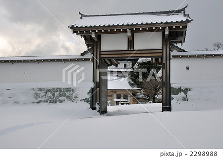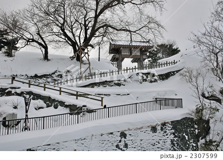 厳冬の松前・松前城 天神坂門