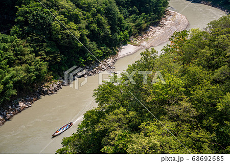 (長野県)天龍峡大橋から見下ろす 天竜川ライン下り船