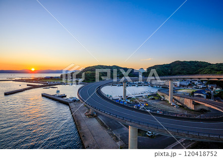 初秋の牛深ハイヤ大橋と朝日 熊本県天草市