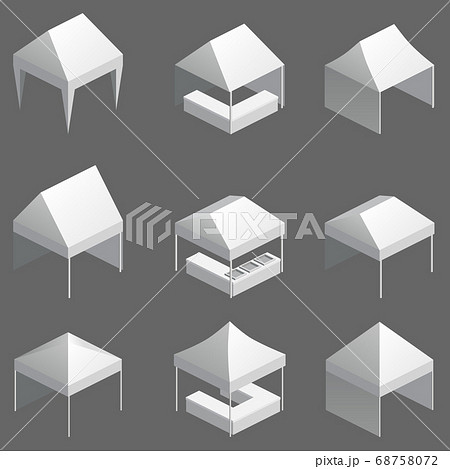 Set canopy tent trade event isometry, folding promotional outdoor advertising show pop-up . Template vector isolated illustration