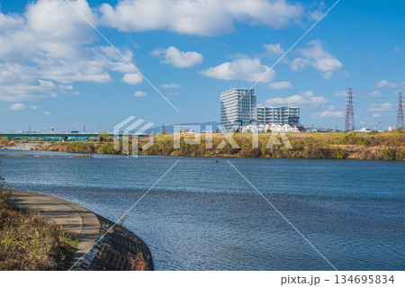 天野川河口付近から高槻市方面の眺め 淀川 大阪府高槻市 枚方市
