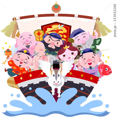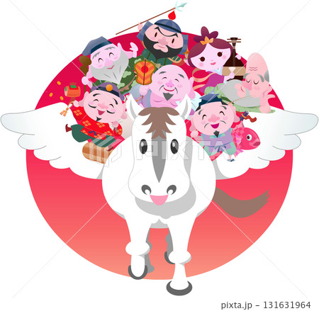 2026年 午年 年賀状素材 イラスト 宝船と七福神