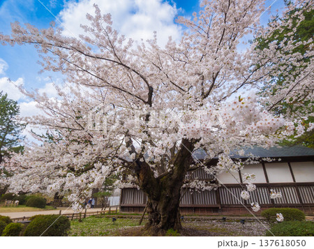 弘前公園最長寿のソメイヨシノが満開に咲き誇る春の風景 (青森県、弘前)