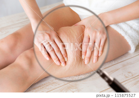 Female body with the drawing arrows. Fat lose, liposuction and cellulite removal concept