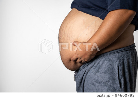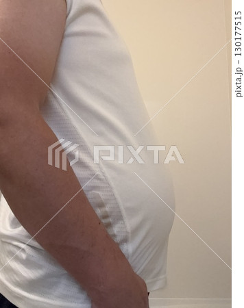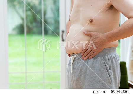 太った男性のお腹(横)・コピースペース