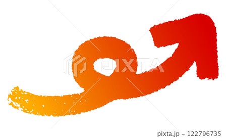 右上へ2回転した上昇矢印 勢いのあるマジックの手描き風 オレンジと赤のグラデーションver.