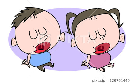 口を開けて座り込んでいる太めの女の子男の子主線なし