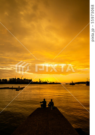 臺灣高雄新光碼頭黃昏Asia, Taiwan, Kaohsiung Port City Dusk