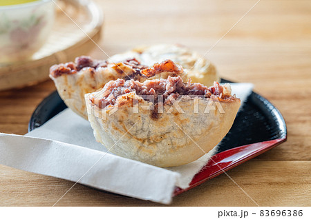 美味しそうな焼きたてのお菓子 梅ヶ枝餅