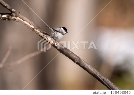 木の枝にとまって当たりの様子を伺っているハシブトガラ