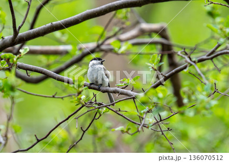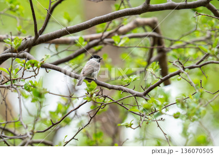 木の枝にとまってあたりの様子を伺っているハシブトガラ