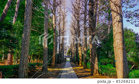 冬のイチョウ並木 音楽家大田黒元雄氏ゆかりの大田黒公園(東京都杉並区)
