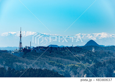 仙台市 太白山自然観察の森 みはらしの道から見渡す市街と太平洋