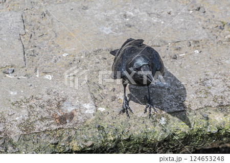 川岸に立つカラス(ハシブトガラス)