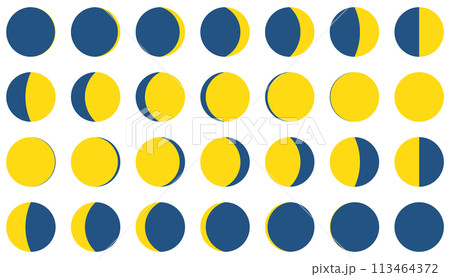月の満ち欠け、三日月、満月のアイコンのベクターイラストセット