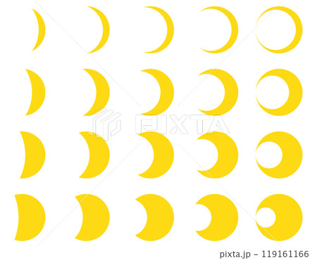 月の満ち欠け、三日月のアイコンのベクターイラストセット