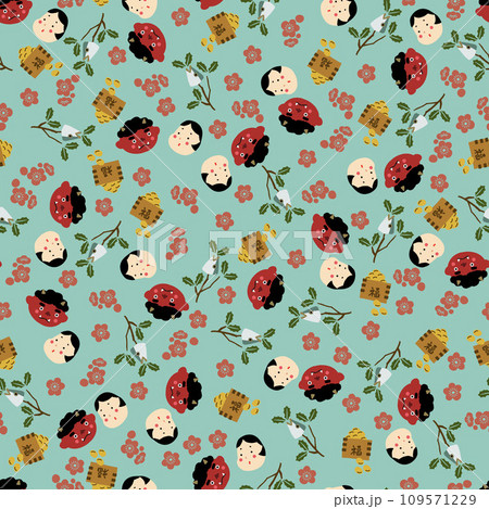 節分のシームレスなパターン、テキスタイル、壁紙、包装紙、行事、イベント、魔除け、和雑貨、デコレーショ