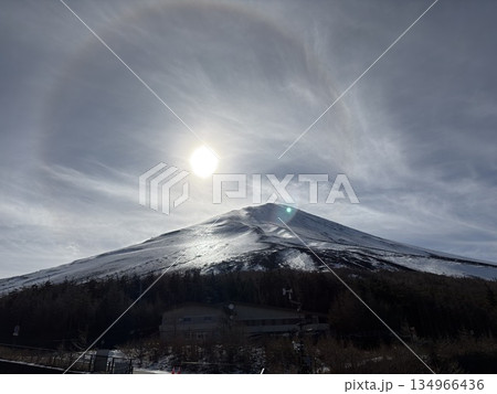 冠雪の富士山とハロ(日暈)