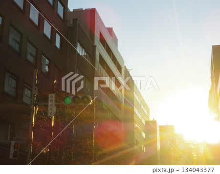 夕日に照らされるビル