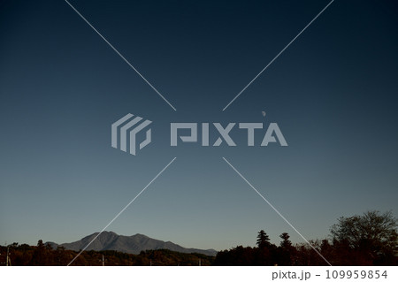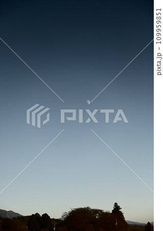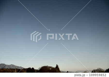夕方のまだ青い空に昇った月齢8.7の月