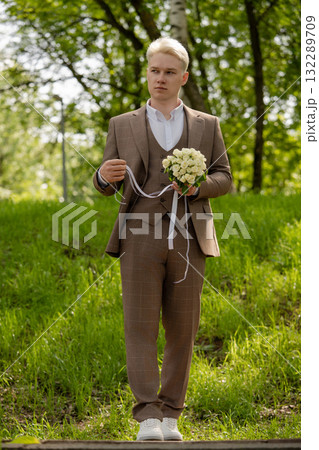 A young woman in the forest transforms into a samurai warrior, representing Japanese culture and holding a katana. Dressed in a costume, the warrior holds the katana, radiating strength and power.