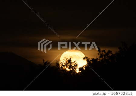 北杜市白州町、雲間に昇る八月の満月、スーパーブルームーン