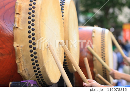 祭りの太鼓 太鼓叩き 太鼓を叩く