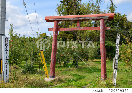 夫婦ポプラ立つ 広峯神社跡の鳥居 青森県